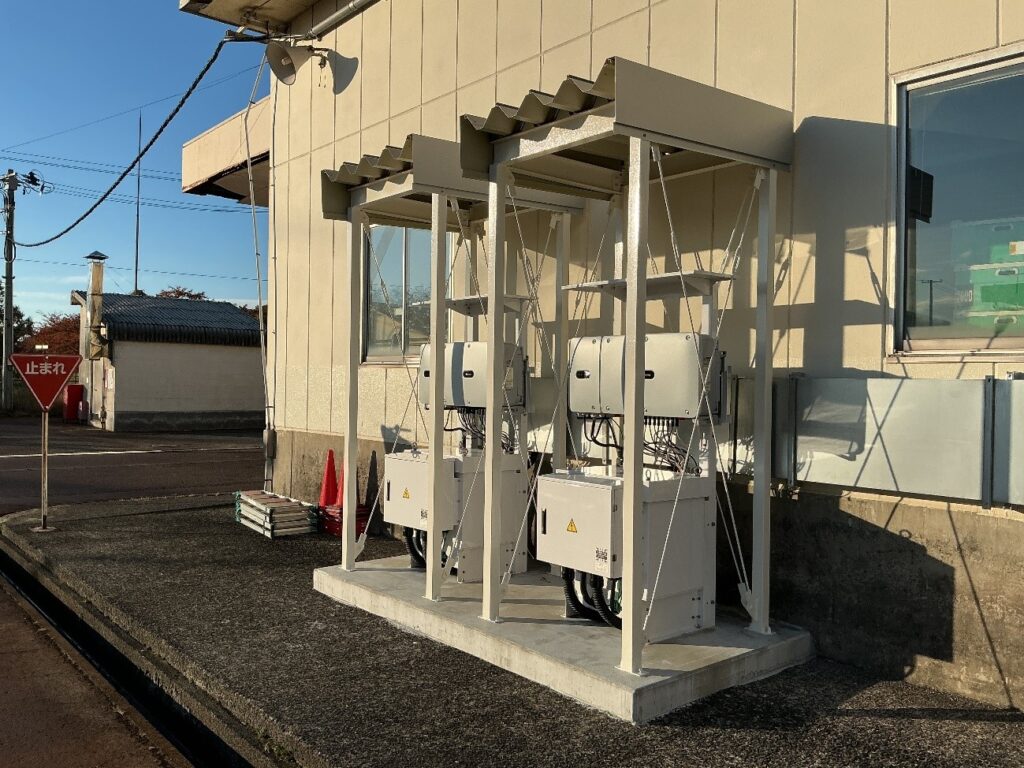 今回、パワーコンディショナーやトランスを設置する場所について当初予定していた電気室内への設置が困難になったことから、屋外で設置することになりました。